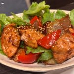 6. 鶏ささみのぺったんこ焼き(梅マヨ・大葉)