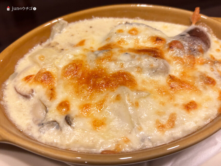 大きくて美味しい椎茸いただいたので牡蠣と椎茸のグラタンにしてみました😊